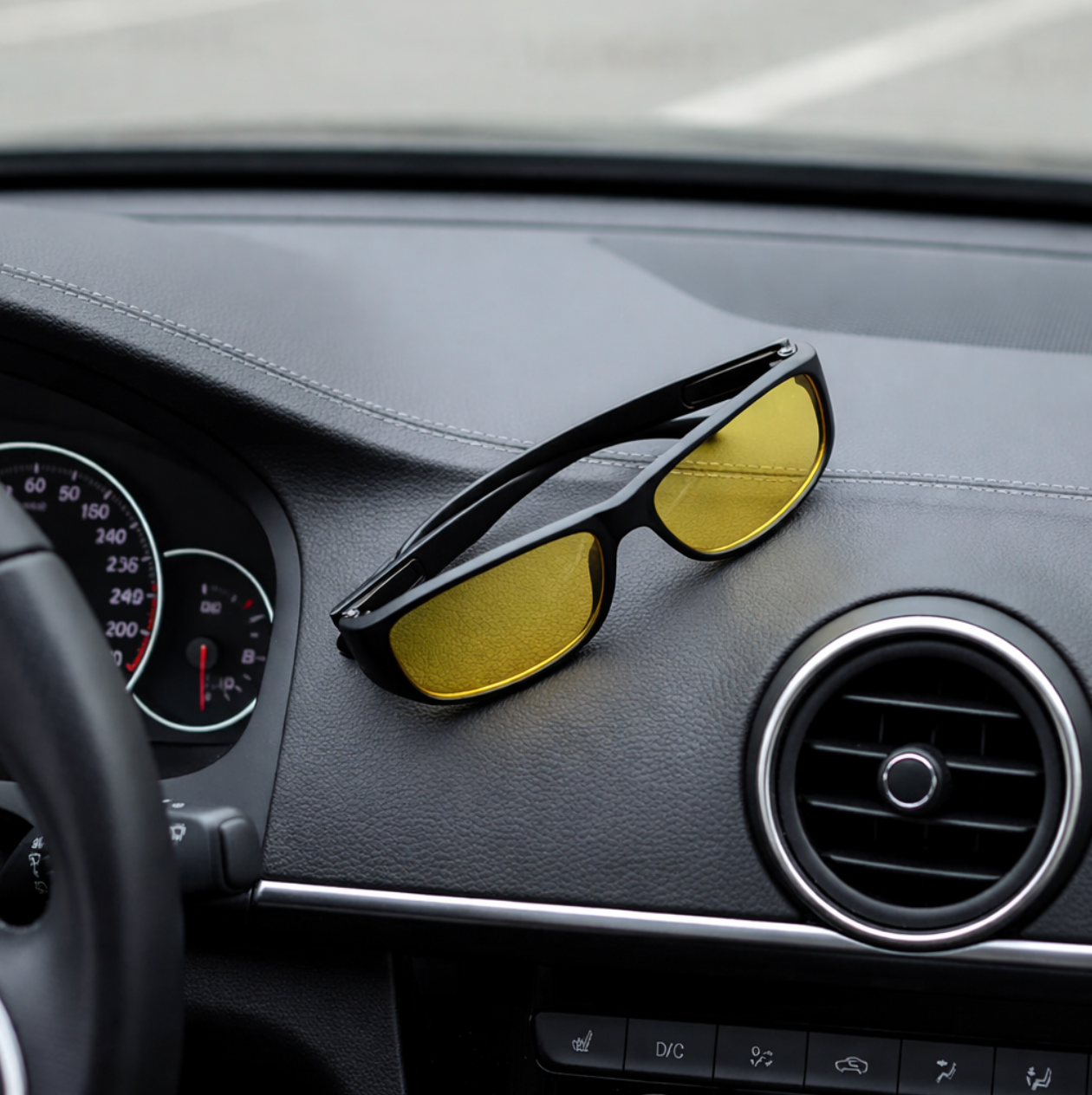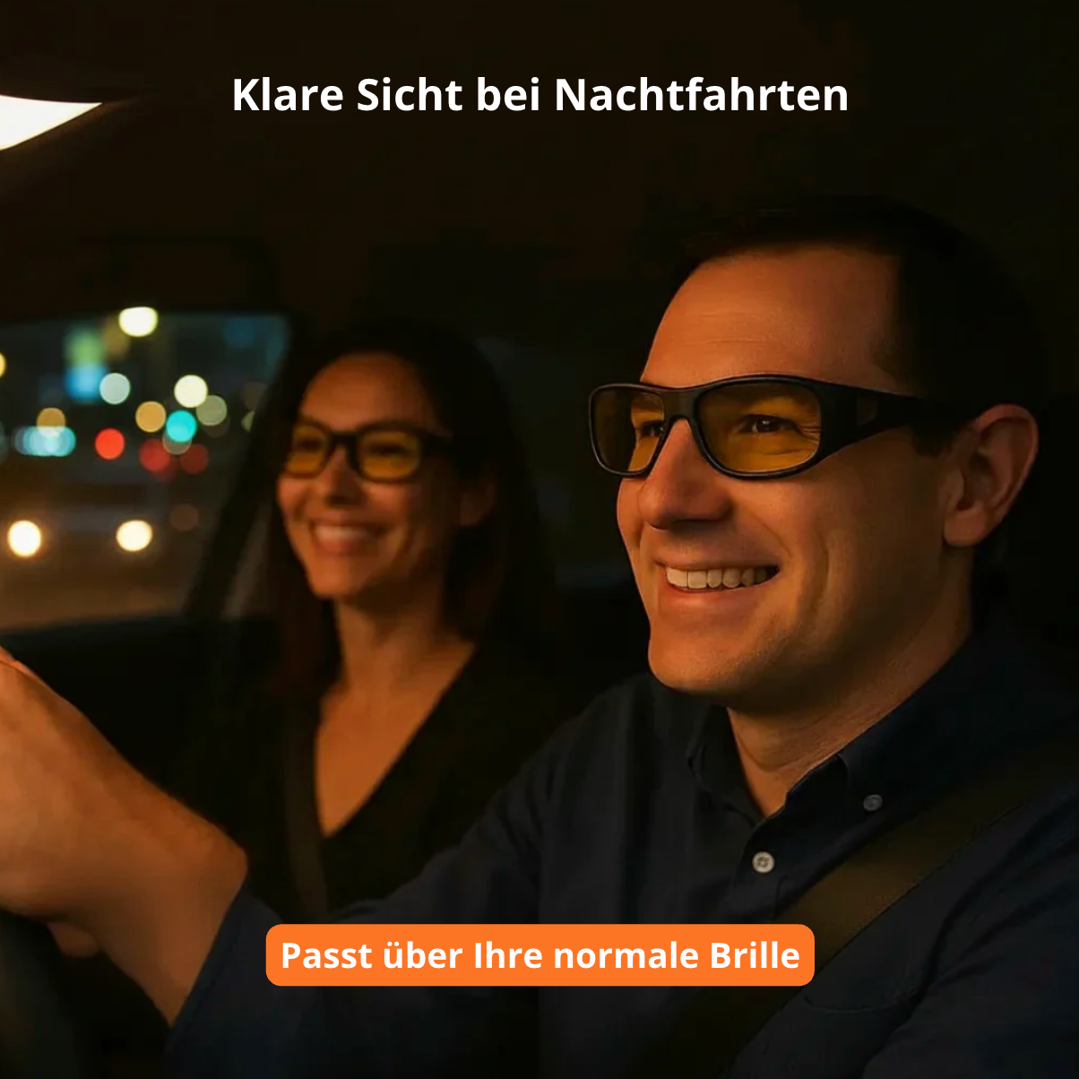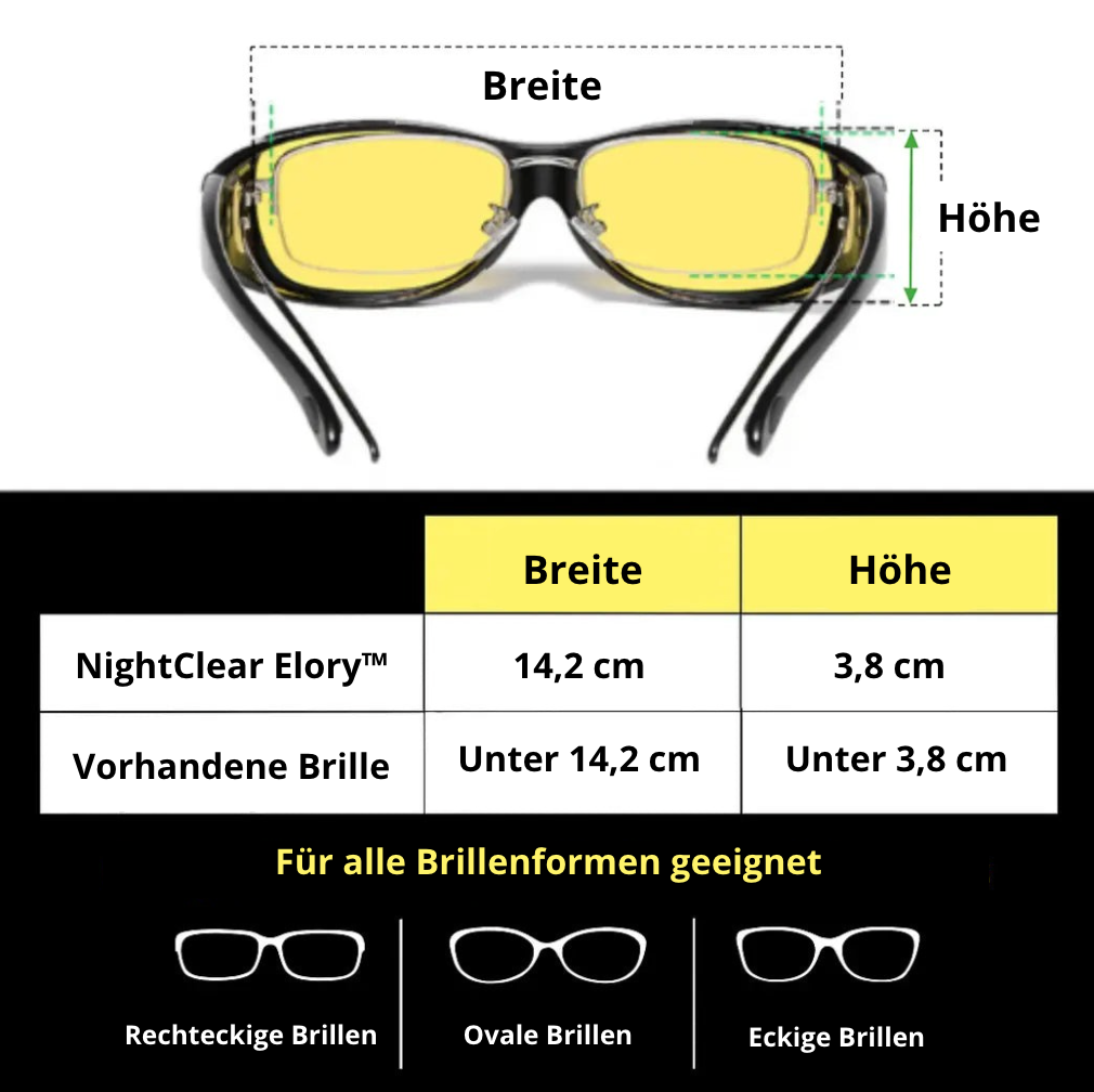 NightClear Elory™ – Die Premium Überziehbrille für sichere Nachtfahrten.